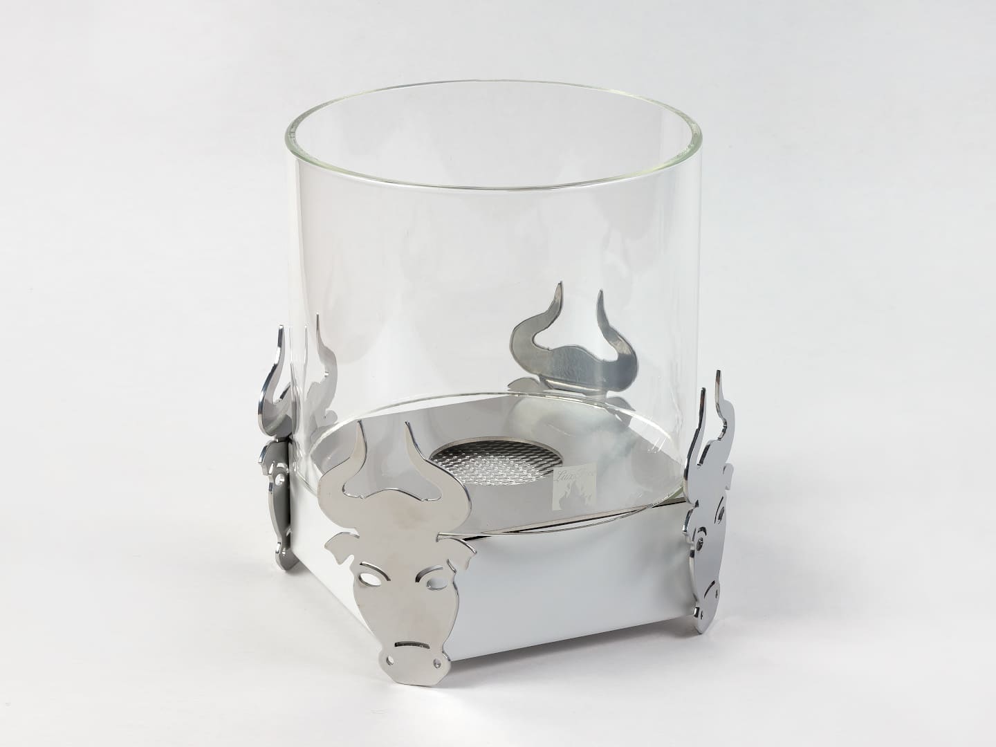 Представляет собой металлический внешний корпус с встроенным топливным блоком Lux Fire 150-2 на декоративных ножках в виде Тельца. Огонь ограничивается стеклянным закаленным плафоном диаметром 180 мм.Среднее время горения 3 часа
